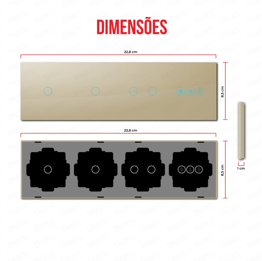 Espelho Quadruplo (1 botão + 1 botão + 2 botões + Estores) Dourado - SYPE4010102ESDR